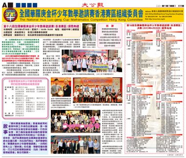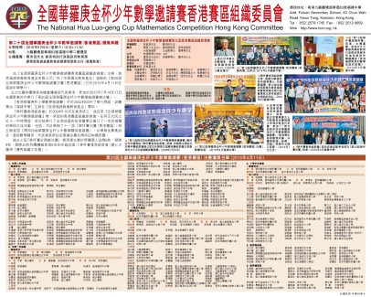 Category: media2021 年 9 月 27 日Album navigationPreviousPrevious album:第十五屆全國華羅庚金杯少年數學邀請賽總決賽 – 江蘇金壇 (2010)NextNext album:2019香港區初賽